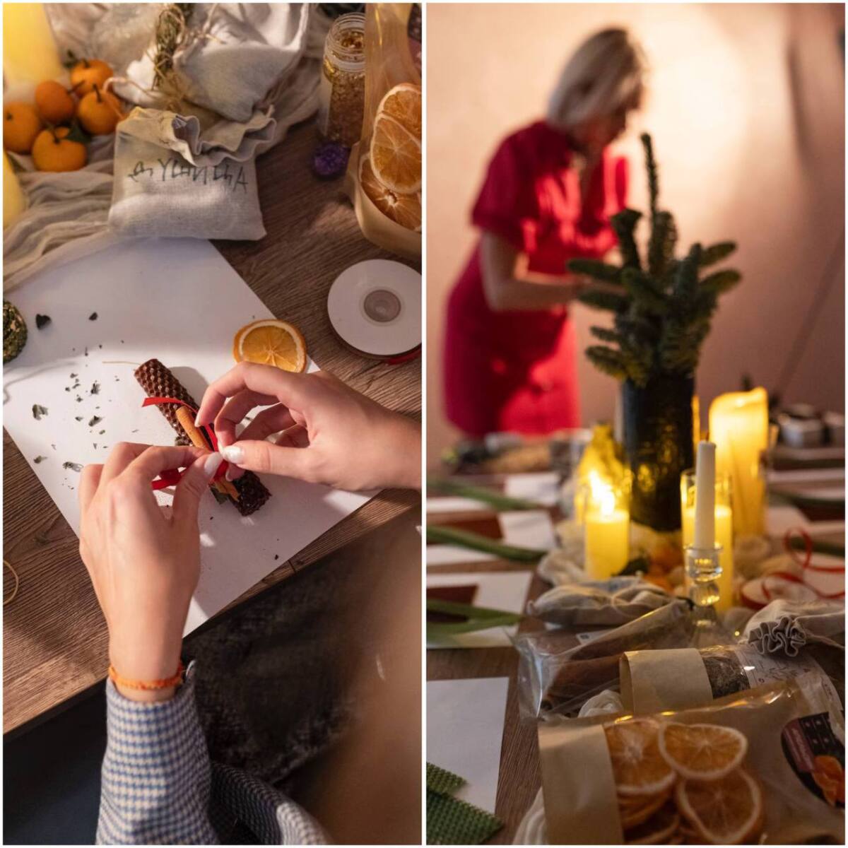 И так вас ждет творческий и очень приятный процесс, в котором смешиваются ароматы, материалы, хорошее настроение и спокойствие. Каждая девушка выберет цвет своей будущей свечи, добавит травы и арома масла под намерение! Мята, розмарин, шалфей, мелисса, лаванда - все травы выращены и высушены лично.