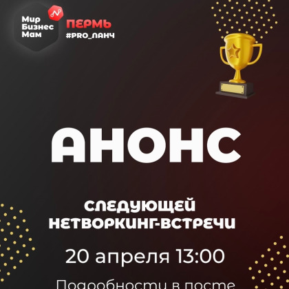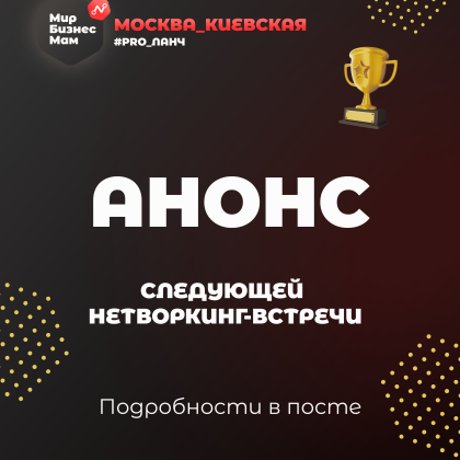 Мы снова соберемся чтобы создать нужные знакомства 🎯 Тема и спикер: 🔄 Уточняются — следите за обновлениями! Спикер и ключевая тема будут анонсированы в ближайшие дни. Готовим для вас практическую и полезную программу.